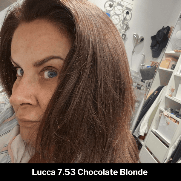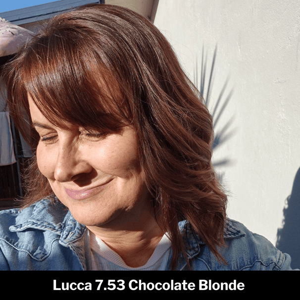 A nuanced and multi-tonal colour, Lucca blends a warm chocolate brown tone with a medium blonde base together with red, mahogany and gold reflects. This is a true one tube wonder – with a lot of beautiful, harmonious multi-dimensional colour packed into one tube. This is not the colour for you if you are looking to avoid reddish tones in your hair.