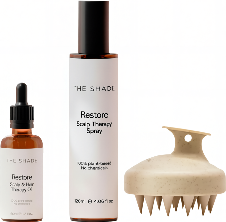 Includes: Restore Scalp & Hair Therapy Oil (50ml) and Restore Scalp Therapy Spray (120ml) + Scalp Massager