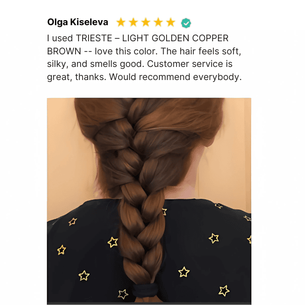 Trieste is light Brown colour that has been energized with golden red secondary tones to produce a gorgeous light brown copper result, with hints of gold throughout.