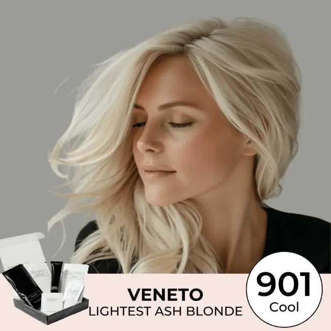 Veneto has an ultra-light blonde base with cool ash secondary tones which neutralise any warm reflections, leaving a striking, ice-cool finish.